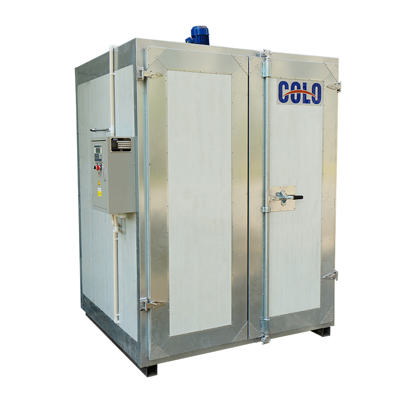 COLO powder coating oven utilizes a sandwich panel design. Rockwool insulation of at least 100mm is inserted between galvanized inner wall and color-steel external skins, effectively minimums temperature dropping.